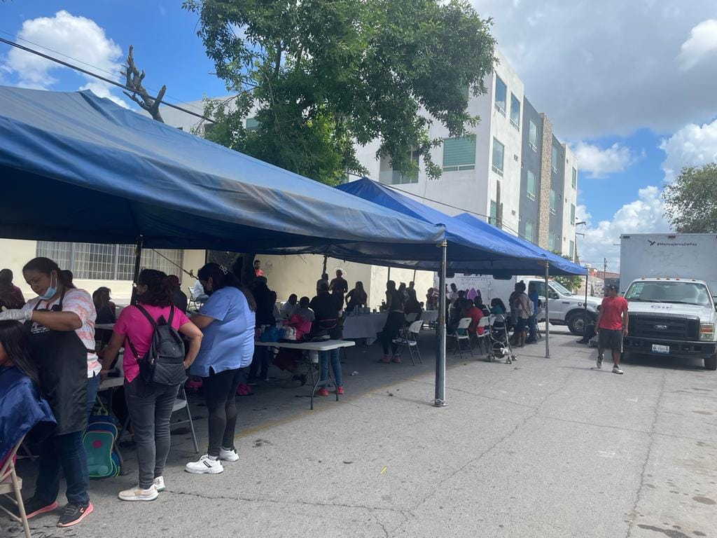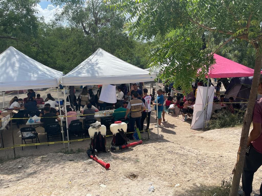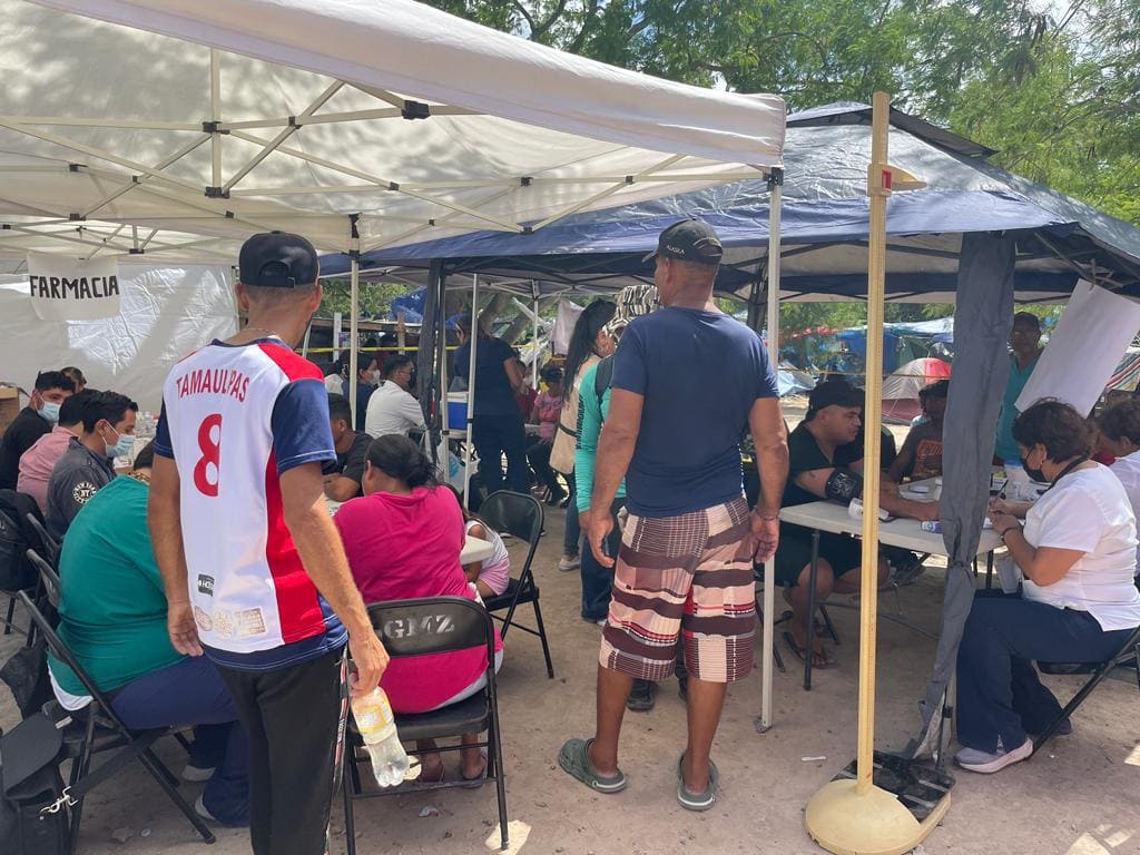 Matamoros, Tamaulipas.- Familias migrantes recibieron servicios de salud y asistenciales en el bordo del río Bravo, mediante una jornada médica integral que realizó la Secretaría General de Gobierno, a través del Instituto Tamaulipeco para los Migrantes (ITM).